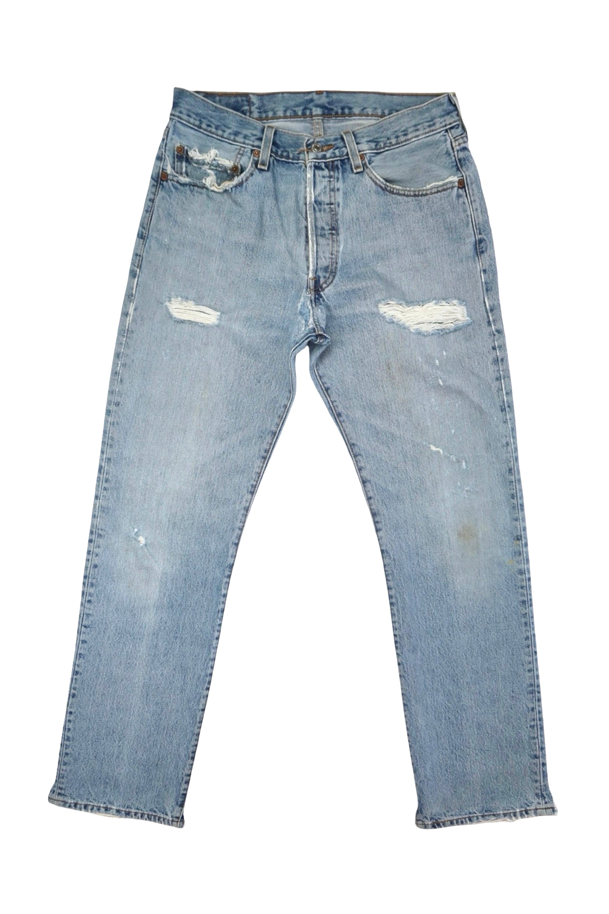 •Distressing, rips, paint, stains & fading throughout